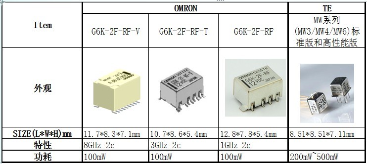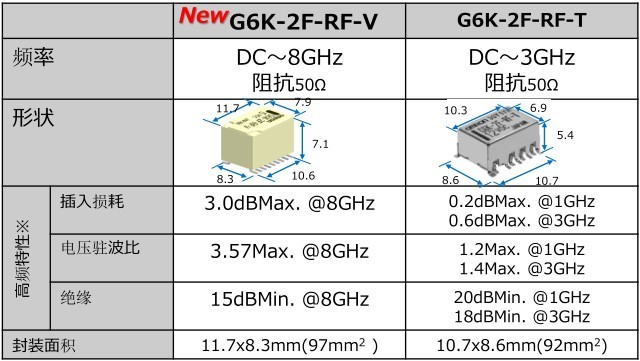 而歐姆龍新出的G6K-2F-RF-V 8Ghz將在特性及性能方面都有明顯優勢;