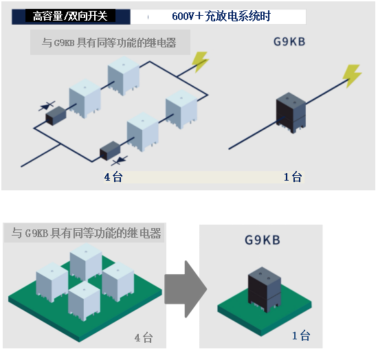 ● 在高電壓600V的系統(tǒng)上,可通過(guò)1臺(tái)繼電器實(shí)現(xiàn)充放電時(shí)直流電流的開(kāi)關(guān)控制和安全阻斷。