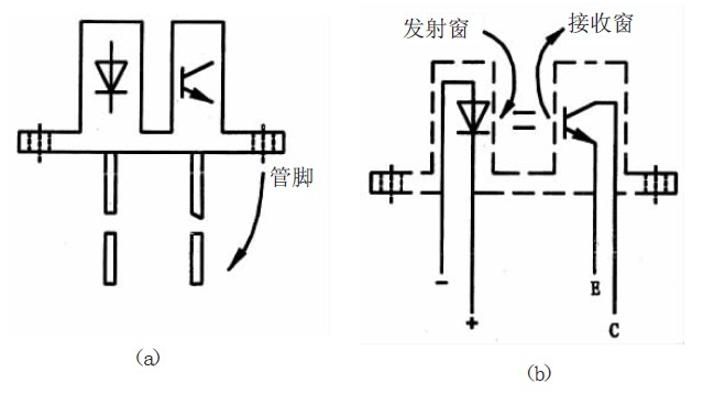 圖1 示出透射、隔離式光電開關(guān)的外形及內(nèi)部構(gòu)造。光電開關(guān)的用途極廣,可構(gòu)成液位、轉(zhuǎn)速、流量傳感器,還適用于自動售貨機、保安裝置、通信設(shè)備中。
