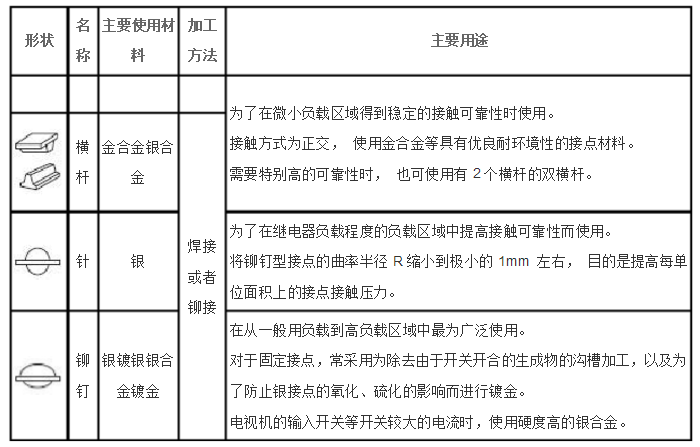 (6)接點(diǎn)的形狀和種類