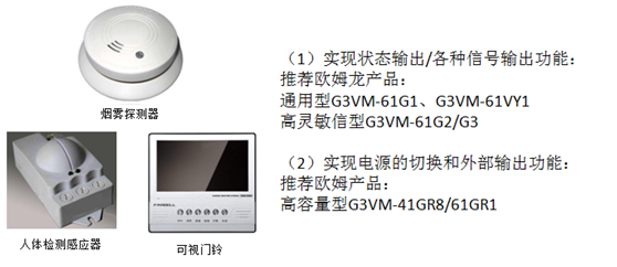 (1)安防設(shè)備應(yīng)用:比如煙霧探測(cè)器、人體檢測(cè)感應(yīng)器、可視門鈴等,繼電器在產(chǎn)品上起的作用主要為產(chǎn)品狀態(tài)指示、控制照明電源切換等。
