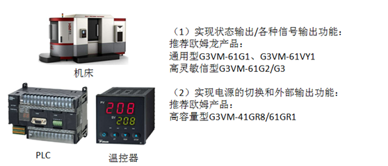 (3)自動(dòng)化設(shè)備產(chǎn)品應(yīng)用:比較機(jī)床、PLC、溫控器、計(jì)時(shí)器等,繼電器在產(chǎn)品上起的作用主要為產(chǎn)品狀態(tài)指示、控制照明電源切換等。