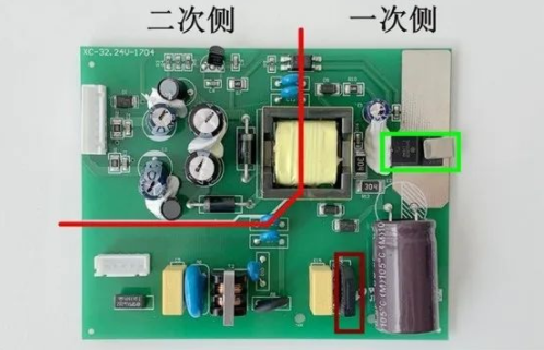 先從電源板這邊說起,首先這個(gè)產(chǎn)品是 220V 交流供電,而后需要輸出一個(gè) 24V 的直流電壓,所以整個(gè)電源板就是去做這部分工作。