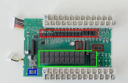 其次,這 IO 接口板上我們也可以發(fā)現(xiàn)此 PLC 是基于繼電器的輸出,這里的話采用的歐姆龍的繼電器(型號(hào)為 G5NB-1A-E-DC24<綠色>