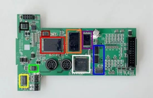 PLC 在 PCB 設(shè)計(jì)上分為了 3 個(gè)板子,從左至右分別為電源板、IO 口板以及主控板。