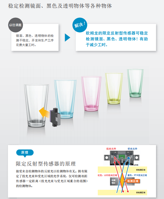 歐姆龍傳感器B5W系列可檢測透明玻璃的有無?在玻璃機械中起什么作用?