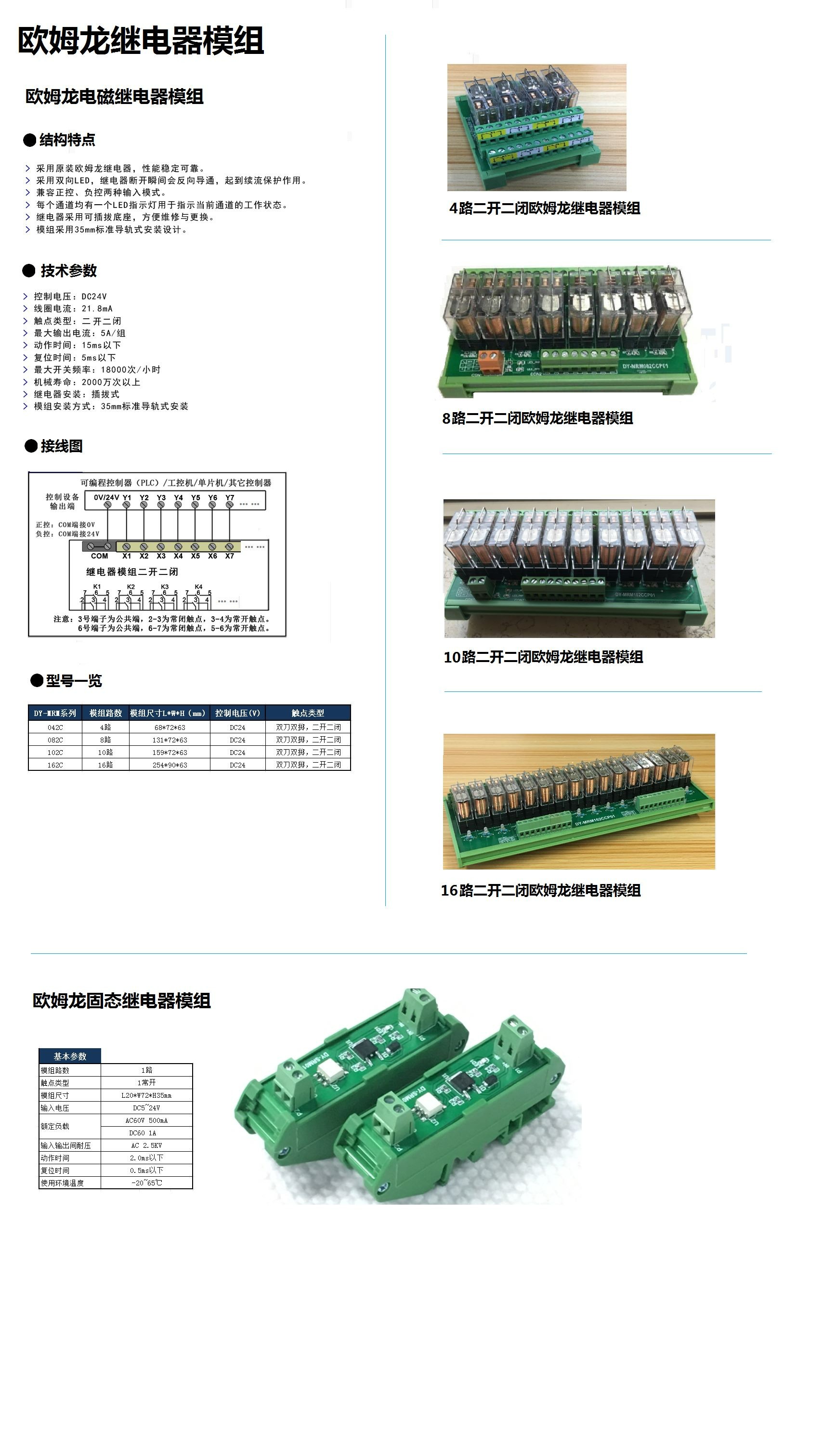 采用原裝歐姆龍繼電器,性能穩(wěn)定可靠。 采用雙向LED,繼電器斷開(kāi)瞬間會(huì)反向?qū)ǎ鸬嚼m(xù)流保護(hù)作用。 兼容正控、負(fù)控兩種輸入模式。 每個(gè)通道均有一個(gè)LED指示燈用于指示當(dāng)前通道的工作狀態(tài)。 繼電器采用可插拔底座,方便維修與更換。 模組采用35mm標(biāo)準(zhǔn)導(dǎo)軌式安裝設(shè)計(jì)。