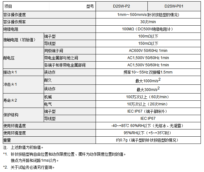D2HW-C203ML小尺寸、可進行可靠開關的長行程開關