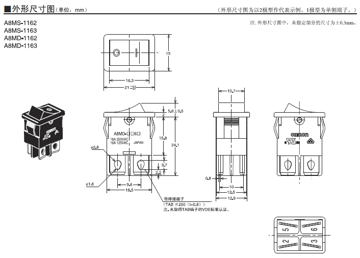 實(shí)現(xiàn)16A開關(guān)性能的小型船形開關(guān) 小型、16A的開關(guān)性能。 可進(jìn)行一觸式安裝。 符合UL、cUL認(rèn)證,EN標(biāo)準(zhǔn)適用品。