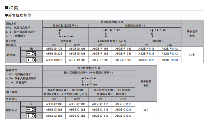 A8GS-C1285遠程復位船形歐姆龍開關
