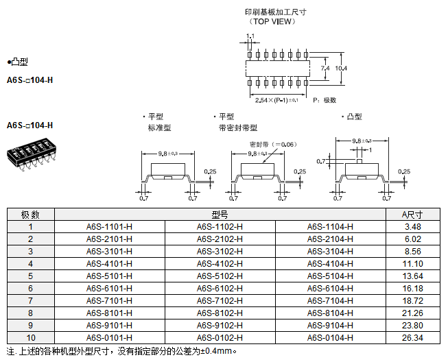 標(biāo)準(zhǔn)表面安裝滑動型撥動開關(guān)