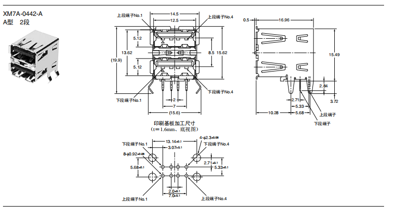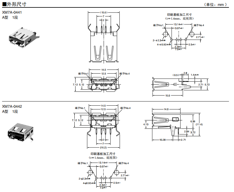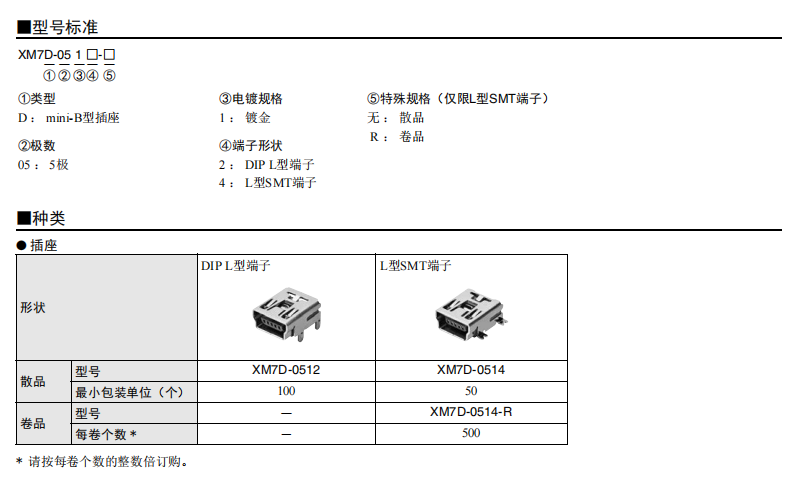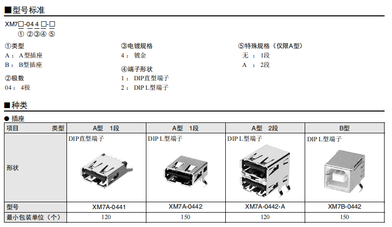 符合USB標準的 小型接口連接器 符合USB2.0標準。 插拔次數(shù)可達1,500次。 A型插座封裝在計算機主體、USB集線器等上,B型插座封裝在調(diào)制解調(diào)器、掃描儀、鼠標等計算機外圍設(shè)備上。 有無認證規(guī)格,請參見“規(guī)格認證”。