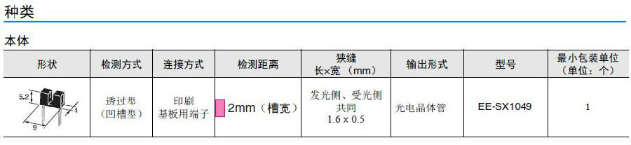EE-SX1049 微型光電傳感器(透過型)
