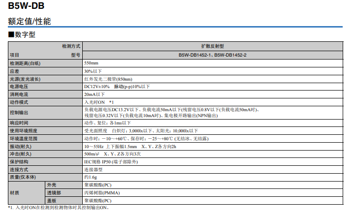 B5W-DB 玻璃檢測傳感器