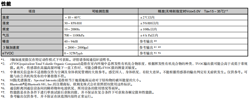 可通過USB或Bluetooth?通信連接到網絡并發送測量數據 采用歐姆龍創新算法,可根據加速度振動實現高精度的地震判斷 使用VOC傳感器,可連續監測室內空氣質量