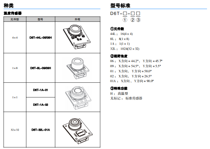 型號 D6T-44L-06/06H D6T-8L-09/09H D6T-1A-01 D6T-1A-02 D6T-32L-01A