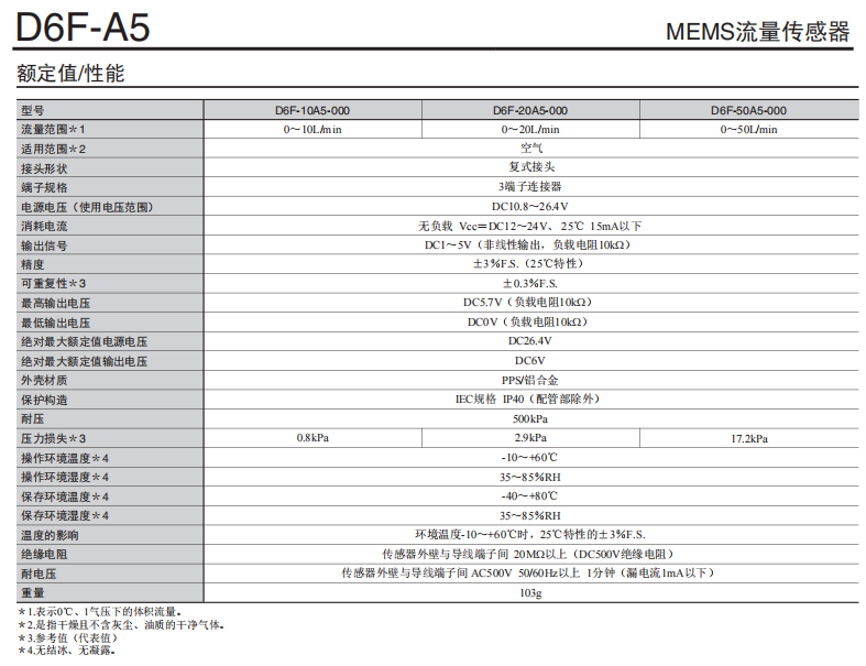 實現小型化 量程0~50L/min 流量域的高精度傳感性能 可對10~50L/min的質量流量進行高精度檢測。 實現長30mmX寬78mmX高30mm